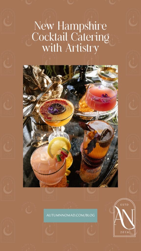 Autumn Nomad is a New Hampshire–based event caterer specializing in artistic cuisine, craft cocktails, custom cakes, and thoughtful event design. We proudly serve Jackson, North Conway, Mount Washington Valley, Bretton Woods, Portsmouth, Tamworth, Meredith, and surrounding New Hampshire towns, while also traveling throughout Maine, Vermont, and to destinations worldwide. Our cakes, cocktails, and catering have journeyed as far as Hawaii, St. John (USVI), California, Utah, and Philadelphia.